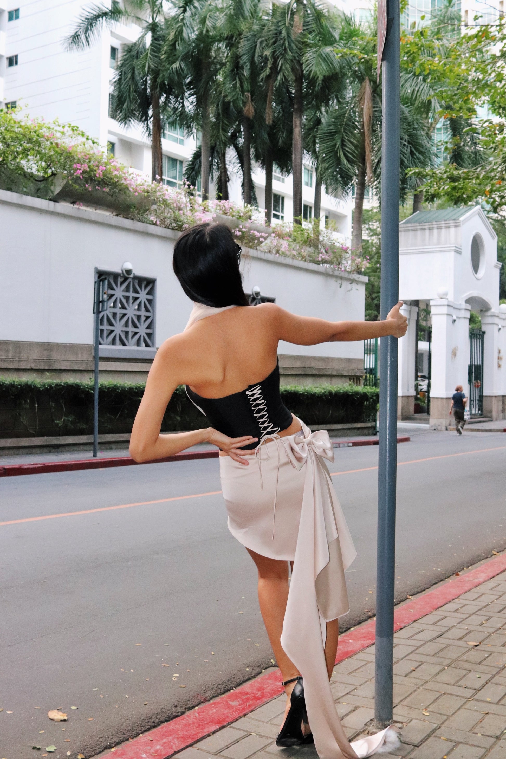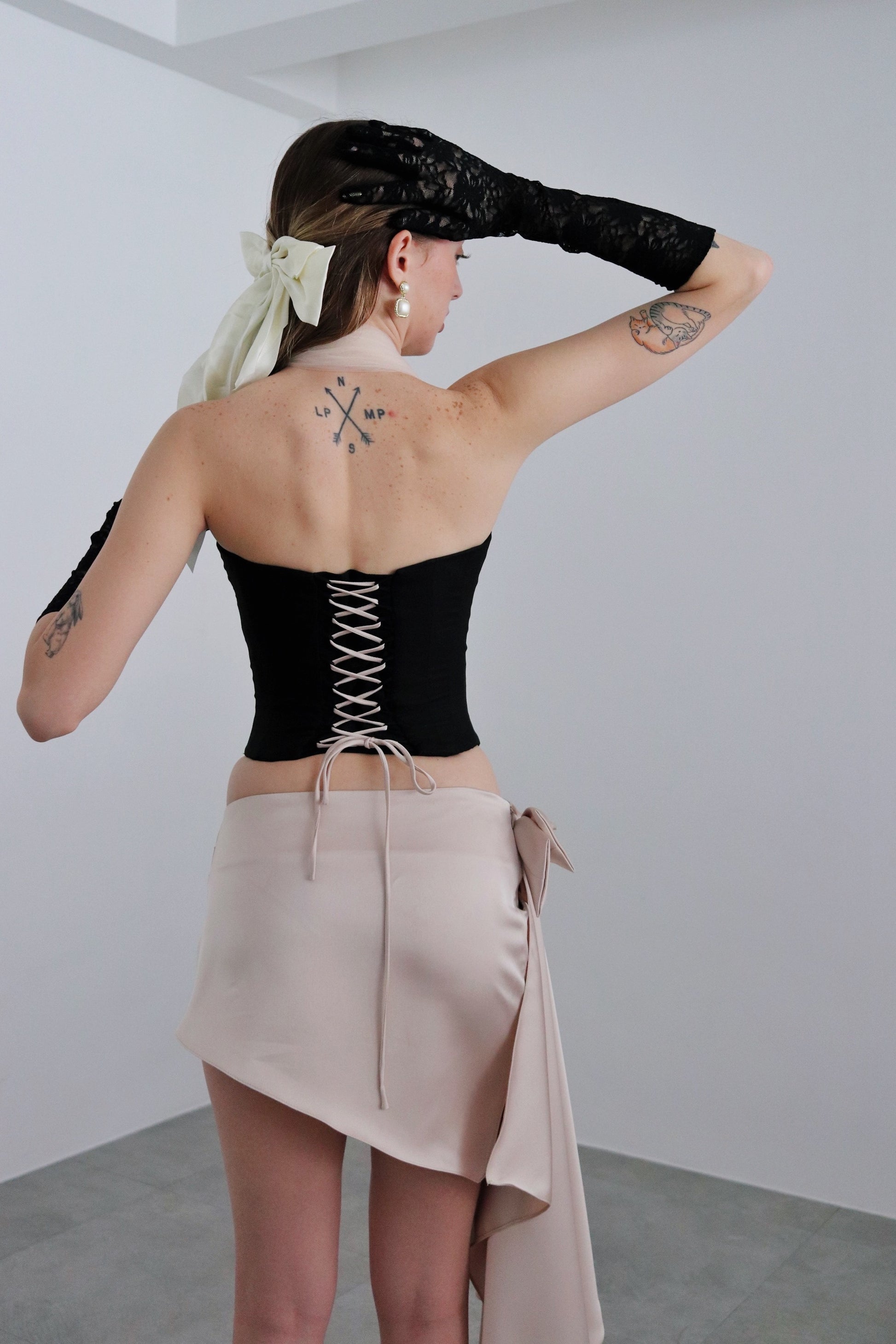 Introducing the Desiree top, a luxurious corset style piece that effortlessly cinches the bodice for a flattering silhouette. Its tulle halter feature and lace-up back design add a touch of elegance, making it suitable for any occasion. Embrace its versatility, from a casual night out to a refined formal affair.